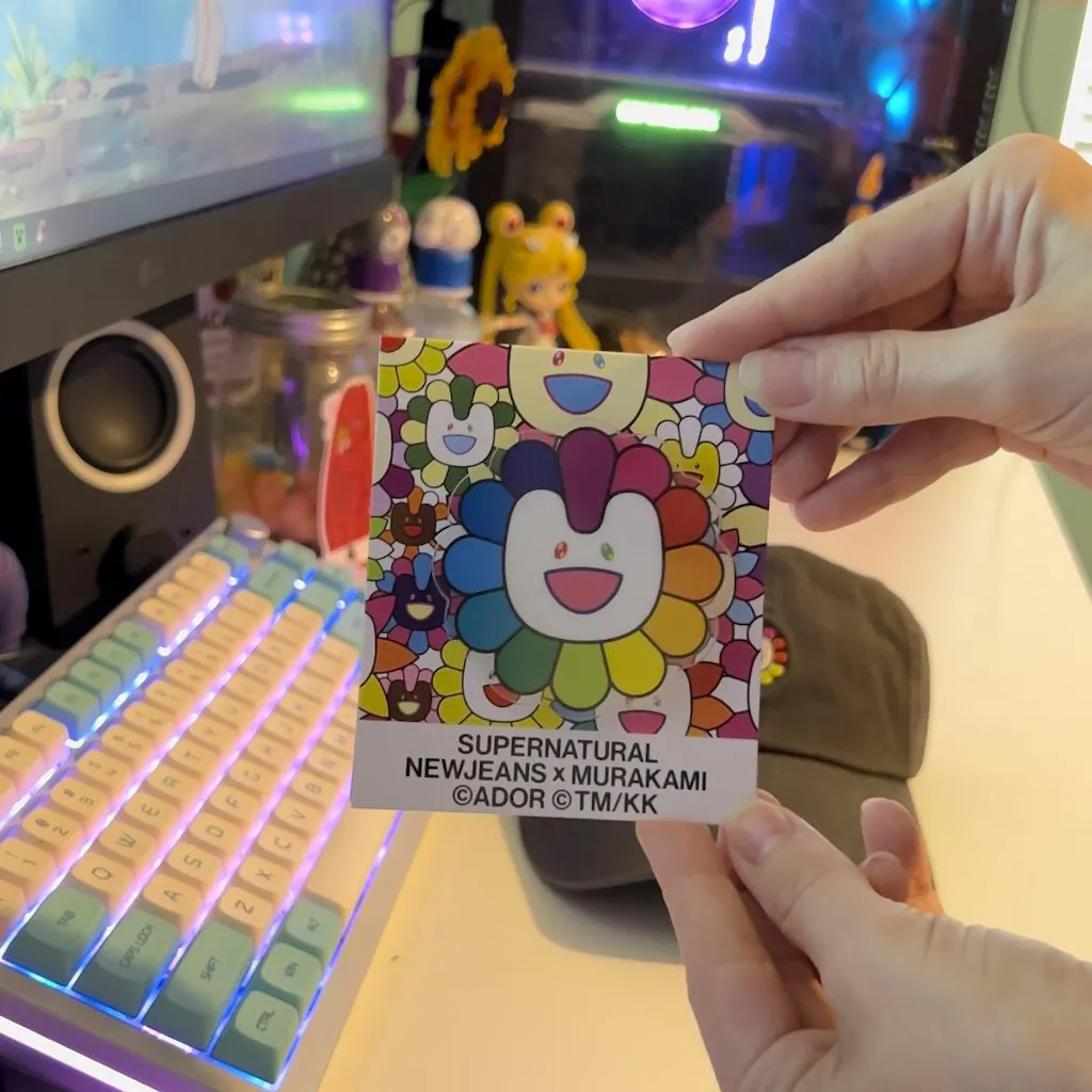 Meet up with NewJeans and Takashi Murakami, Japanese contemporary artist! Get immersive into NewJeans merch, featuring MURAKAMI's distinctive flower motif. Attach it to the back of your mobile device for a convenient and stylish phone grip.